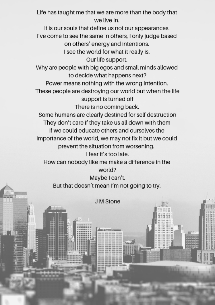 Poetry Small selection of my work Self destruction #mentalhealthawareness2019 #domesticviolence Share this: Share on X (Opens in new window) X Share on Facebook (Opens in new window) Facebook Like Loading...